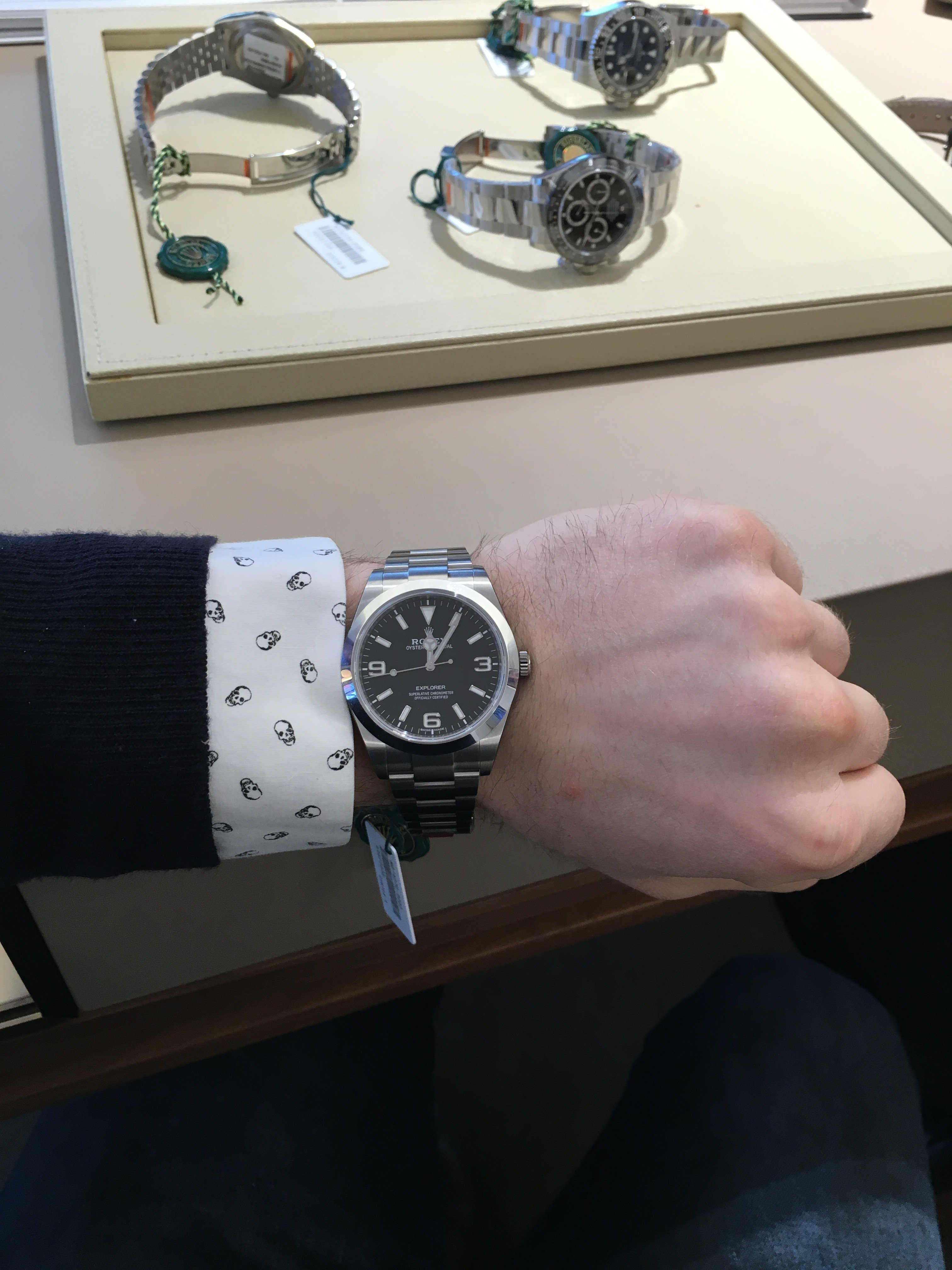 This is on my relatively flat 6.5" wrist. I tried it on and surprisingly it didn't feel too big for me, but having the dial take up most of the width of my wrist did feel a little like wearing a pie plate, haha. 21.09.2020 · fearless, rolex on wrist. The new 39mm explorer has lumed numbers, but it is bigger. 21.09.2020 · fearless, rolex on wrist.